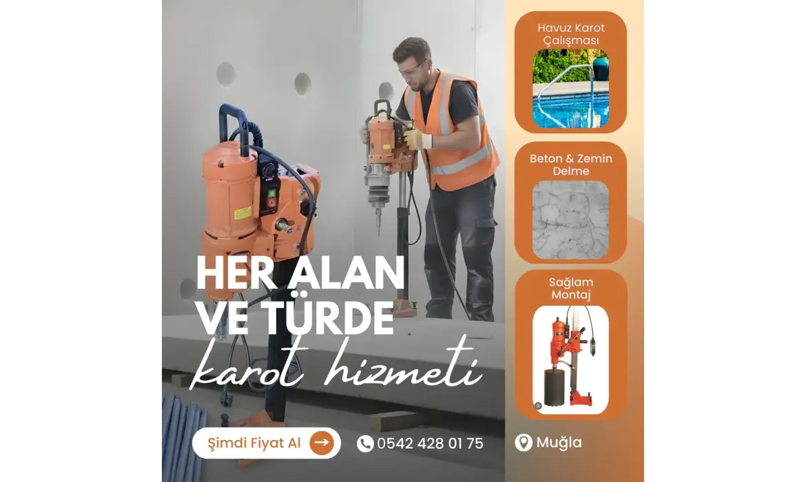Ferah Tel Muğla olarak, profesyonel ekipmanlarımız ve uzman kadromuz ile her alan ve türde karot (beton delme) hizmeti sunuyoruz. İnşaat, tadilat ve altyapı projelerinde ihtiyaç duyulan tüm delme işlemlerini, yüksek hassasiyetle ve yapıya zarar vermeden gerçekleştiriyoruz.